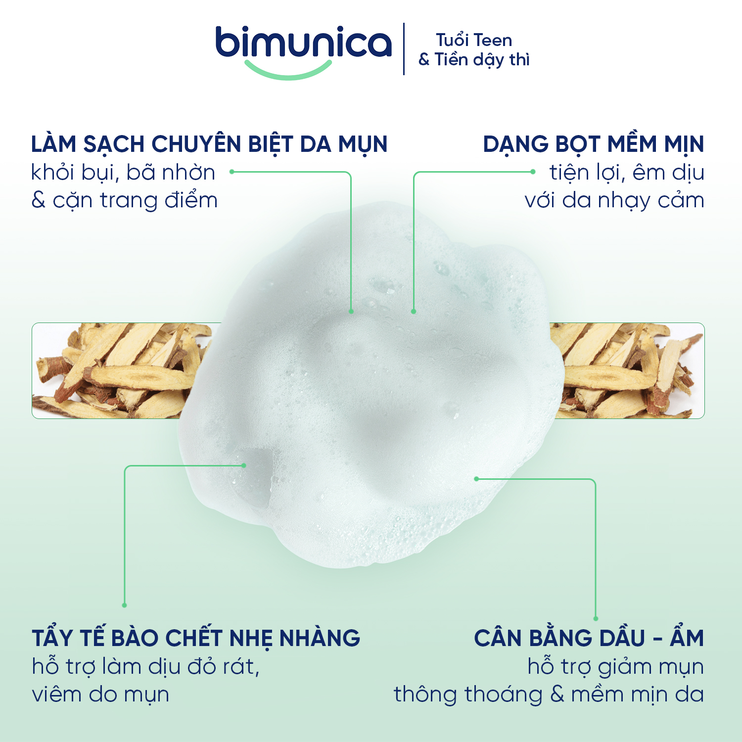 CÔNG DỤNG BỌT RỬA MẶT BIMUNICA SKIN BEAUTY ANTI-ACNE