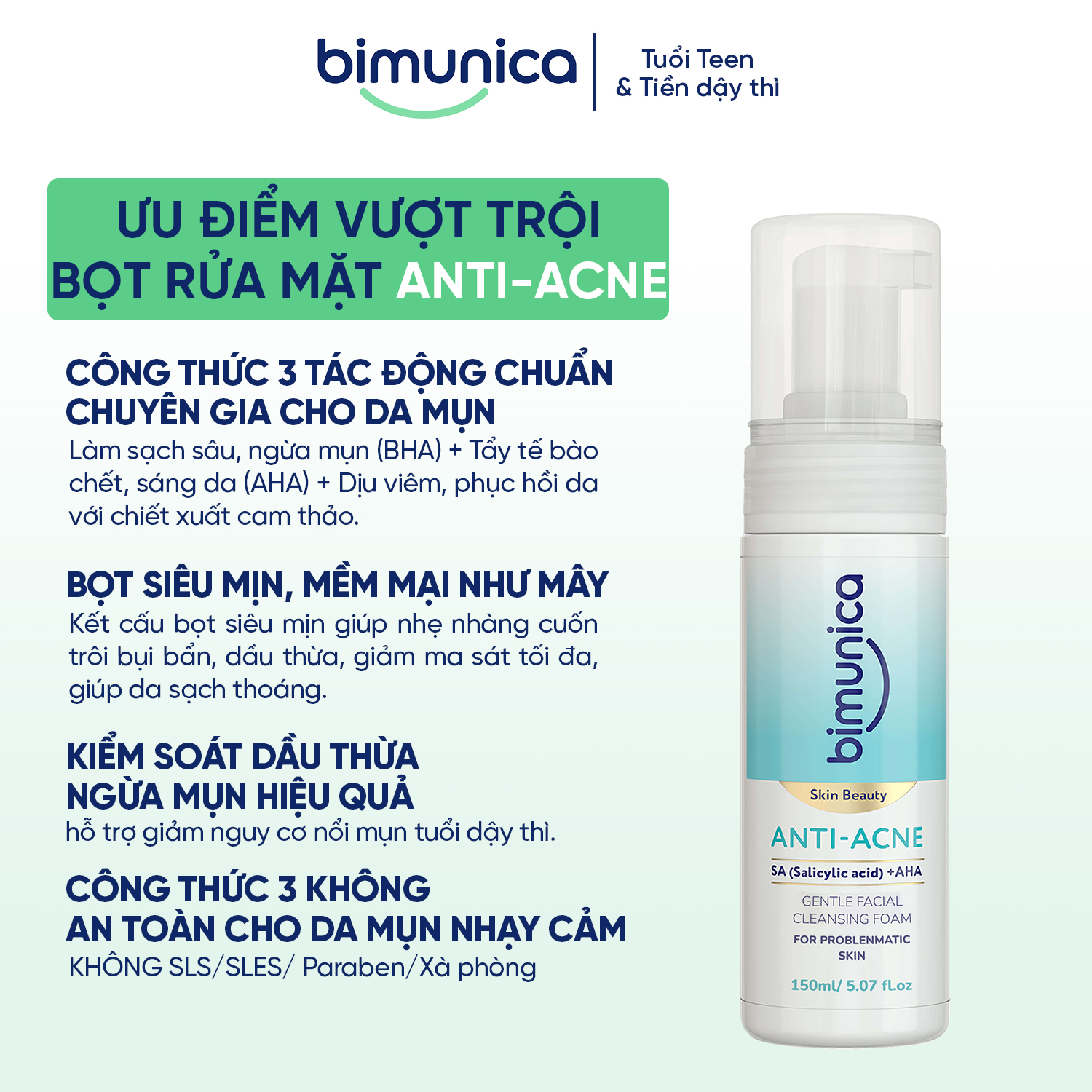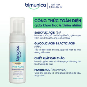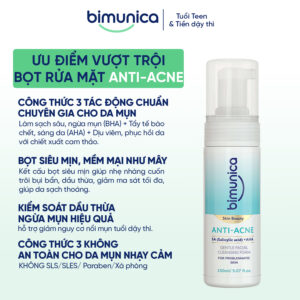 Bọt rửa mặt Bimunica Skin Beauty Anti-Acne – Làm sạch sâu, cân bằng và chăm sóc da mụn tuổi dậy thì