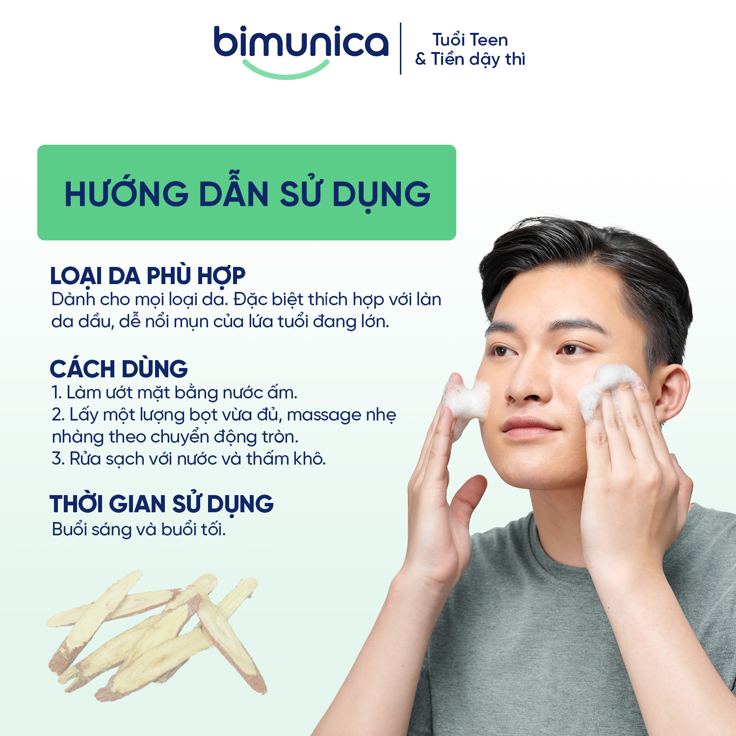 CÁCH SỬ DỤNG BỌT RỬA MẶT BIMUNICA SKIN BEAUTY ANTI-ACNE