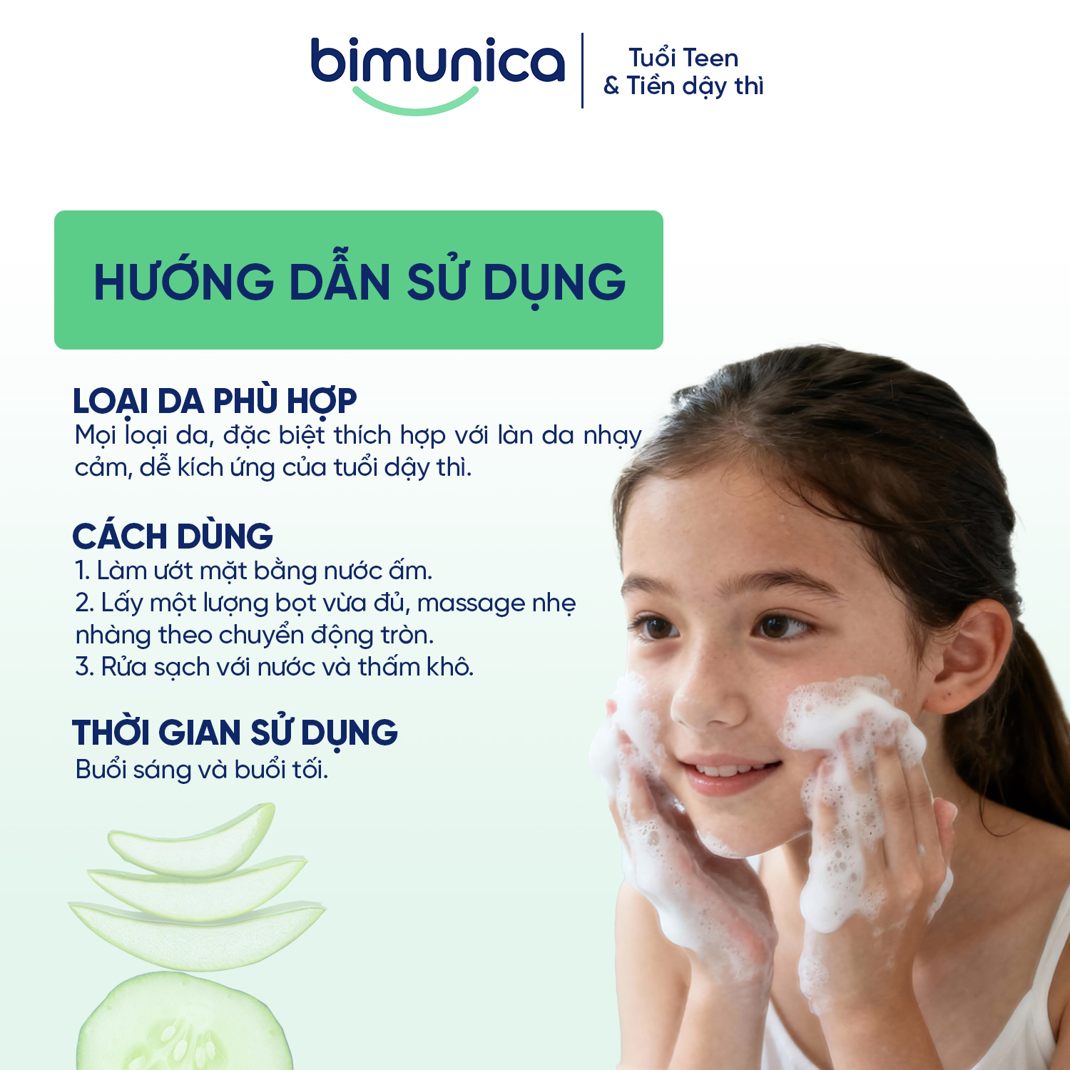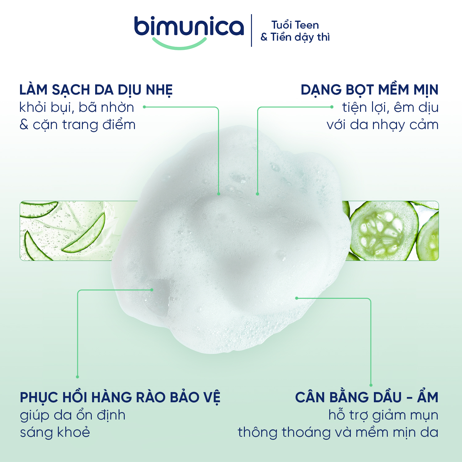 Bọt rửa mặt Bimunica Skin Beauty – Làm sạch dịu nhẹ, phục hồi và bảo vệ da nhạy cảm tuổi dậy thì và tiền dậy thì
